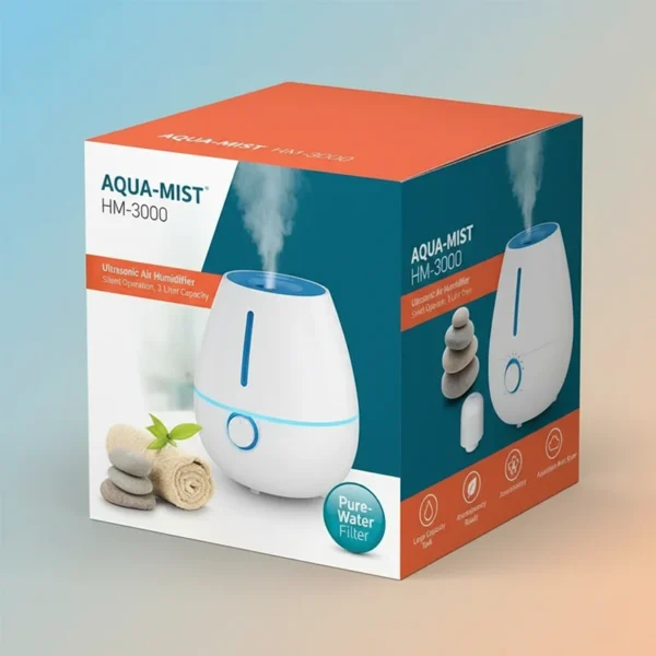 When customers buy an air purifier, they wish for simple, readable information on the packaging. So we design layouts that communicate the key specifications in an easy-to-read way. Our front panel remains clean so that the visual is prominent. The side panels display coverage area, CADR numbers, filter lifespan, and noise levels. For multi-filter systems, we clearly show which pollutants each filter targets.